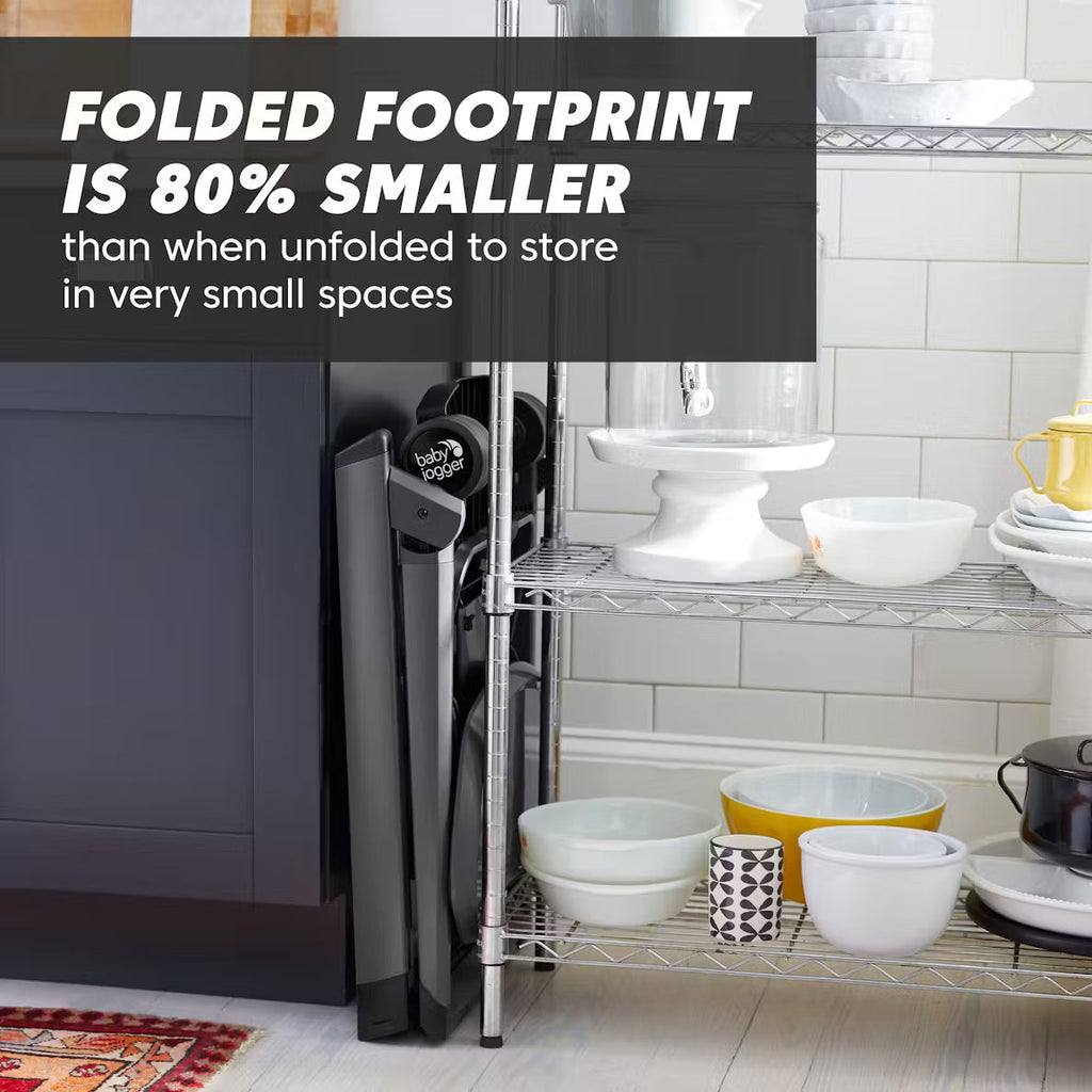 Take back your kitchen with the city bistro High Chair, the most compact folding high chair*, perfect for families looking for a sleek and slim high chair that quickly folds away for storage in the smallest of spaces. The city bistro High Chair folds down into a self-standing fold that is 80% smaller than when unfolded. The tray simply clips onto the back of the high chair to keep all the pieces together while folded, and the tray insert can be placed in the dishwasher for cleaning. With 4 different height positions, this high chair will grow with baby and provides added comfort with a plush, premium seat pad for children up to 40 lb. The machine-washable, stain-resistant removable fabrics make cleanup a breeze. Bonus: It's ready to go out of the box, no additional assembly required. (*Based on the volume of the high chair when folded with tray attached in the storage position)