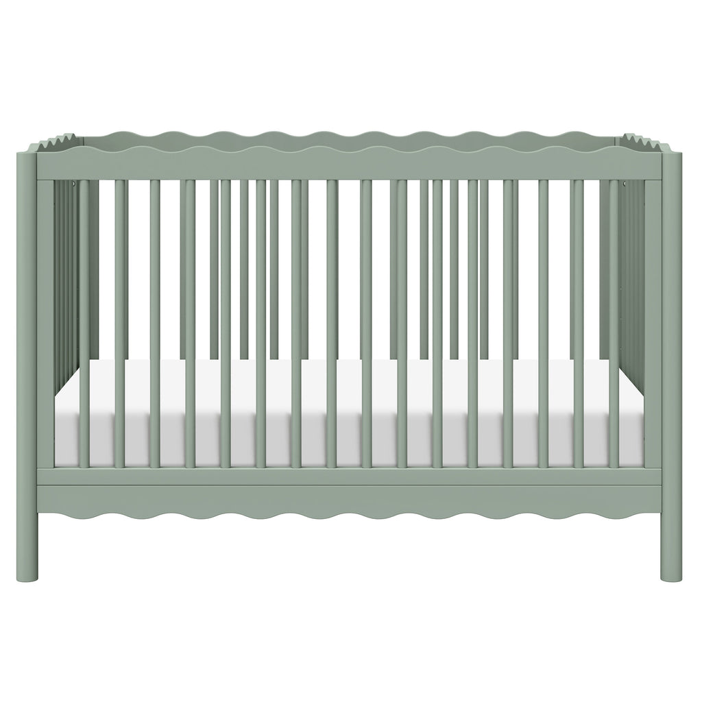 Dive into a world of playful charm with the Swell 4-in-1 Convertible Crib! Designed with wavy top and bottom railings inspired by the gentle undulations of ocean waves, this crib invokes the serene beauty of the sea and comes in a variety of colors to compliment any nursery. The Swell is made with sustainable New Zealand pine wood and screened for harmful chemicals to ensure it meets GREENGUARD GOLD Certification. An included toddler bed conversion kit allows you to seamlessly convert from crib to toddler bed to daybed with the option to add a full-sized bed conversion as you enter the big kid years.