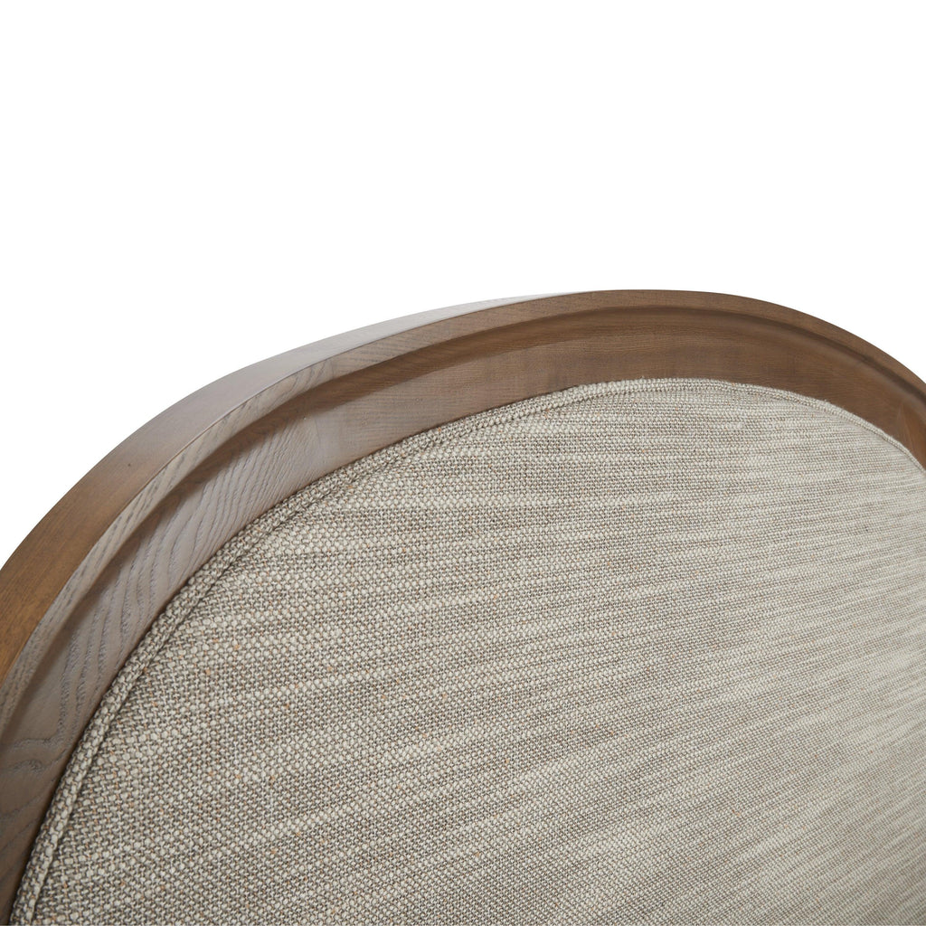 Our Maxi-Cosi Quiet Luxury 5-in-1 Convertible Crib features a tall, gracefully arched headboard upholstered in a soft polyester-blend fabric, and together with the warm tone of the wood and rounded edges, this crib invites serenity into your little one’s bedroom. This versatile classic crib also offers an under-crib storage drawer.