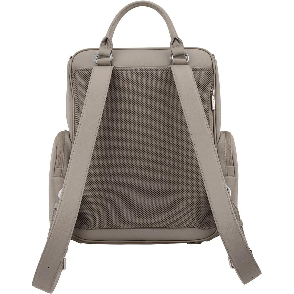 The Essential bag redefines everyday luxury with its chic leatherette styling and versatile parenthood functionality. Crafted as a multi-tasking backpack that also serves as a diaper bag, it features a laptop-friendly design with a thoughtful array of exterior and interior pockets, a handy changing pad clutch, and a luggage trolley sleeve for travel convenience.