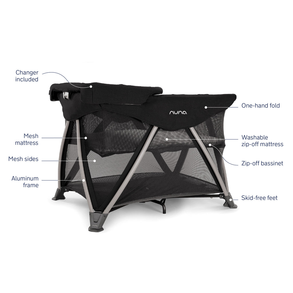 A unique zigzag leg design pops open easily into a soft, sturdy dreamland, and then refolds with just one hand for a quick getaway the next morning. Its revolutionary design is also evolutionary: growing beyond newborn through toddlerhood, and even doubling as a play space.