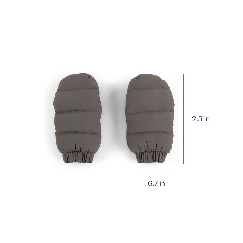 - Mittens attach to pushbar with magnets for keeping close and snap together for safekeeping