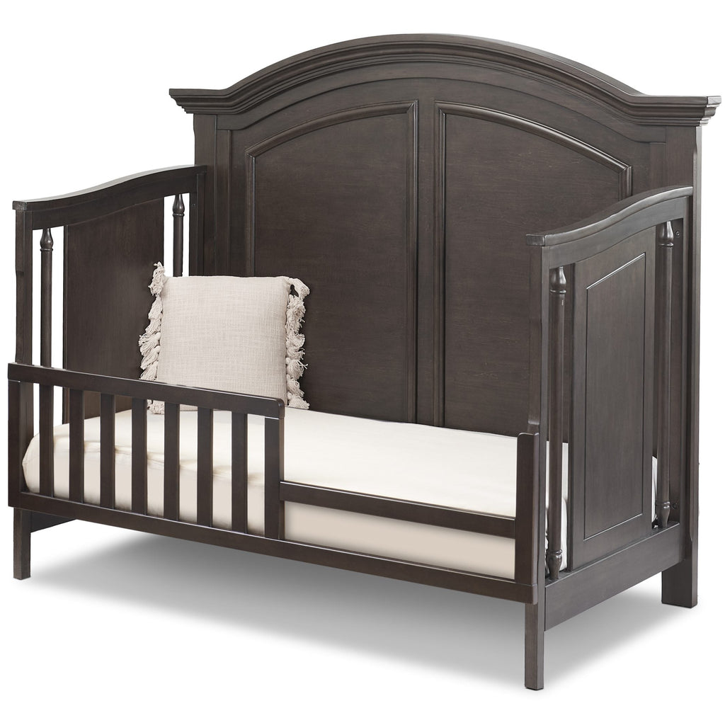 Beautifully crafted spindles paired with an arch top solid panel headboard, the Sorelle Portico Crib is a great piece to add to your child’s nursery for that traditional touch. Designed to grow along with your child, this crib can easily transform into a toddler bed, day bed and full size adult bed. The toddler rail (item# 136) and full size rails (item#215) are sold separately. The transformation of this piece allows it to be a staple for your child’s room for many years to come.