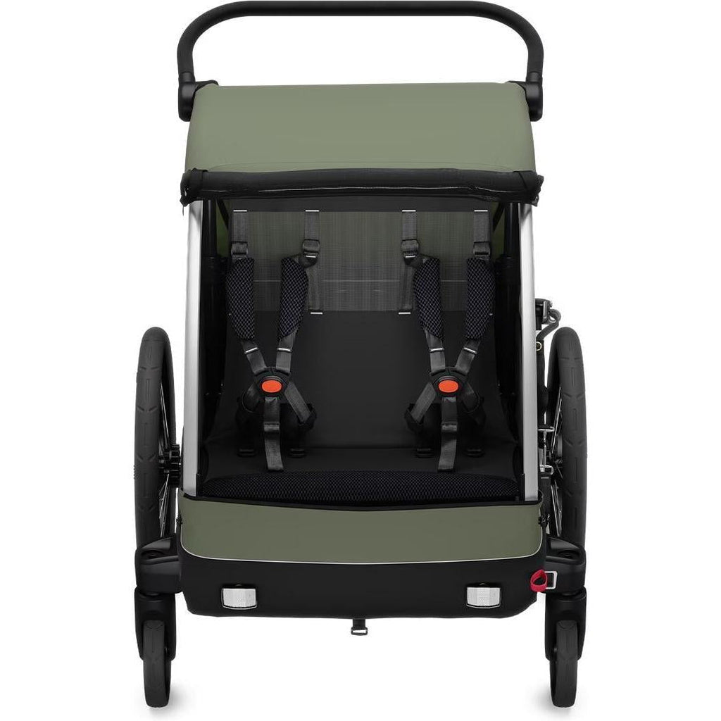 Thule Courier is a versatile bike trailer for all types of families. This durable carrier is perfect for long rides as a family or for quick trips into town with its roomy cockpit for two children. It’s great for commuting and taking kids to school – and when you arrive, it easily converts into a stroller with compact wheels for maneuvering in crowded areas and a fully adjustable handlebar for parents. This comfortable bike carrier also features the option to fully convert into a cargo trailer and more.